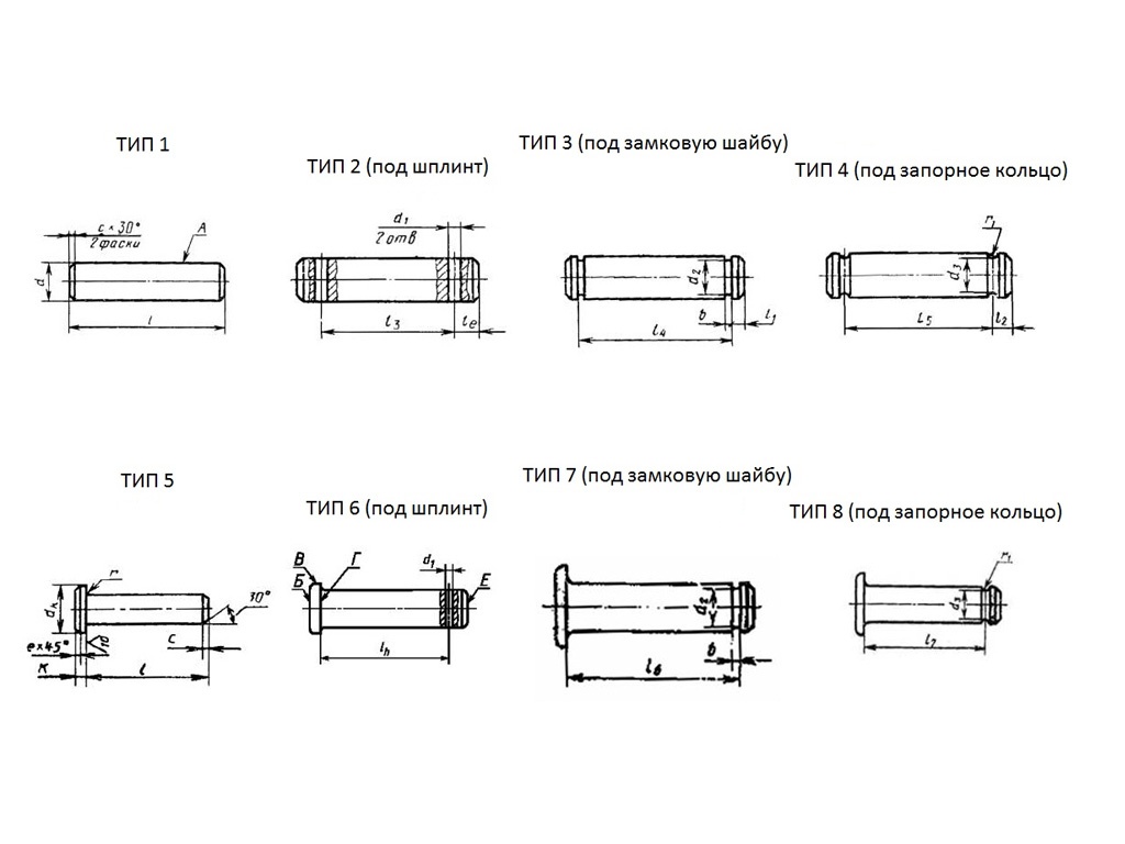 Ось ГОСТ 9650-80 представляет собой цилиндрическую деталь, которая в основном служит для фиксации вращающейся детали. Оси как правило неподвижны, а вращающиеся детали насажены на них. В редком случае ось вращается и сама, например, в колесной паре вагона. Они не предназначены для передачи усилий движения или вращения. Часть оси, находящаяся на опоре или подшипнике, называется цапфа. Для изготовление осей обычно используют сталь 40 и 45 или Ст.4 и Ст.5, иногда некоторые легированные стали. Часто в осях делают отверстия для фиксации шплинтом.