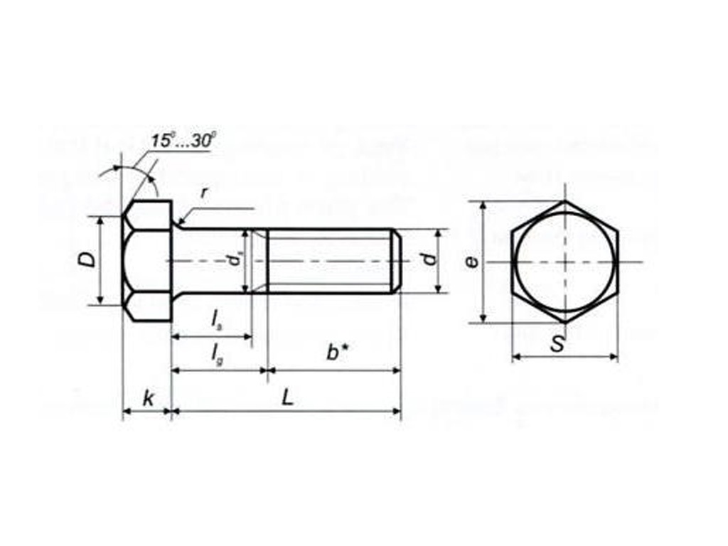 Болт с шестигранной головкой, класс точности В ГОСТ 10602-94