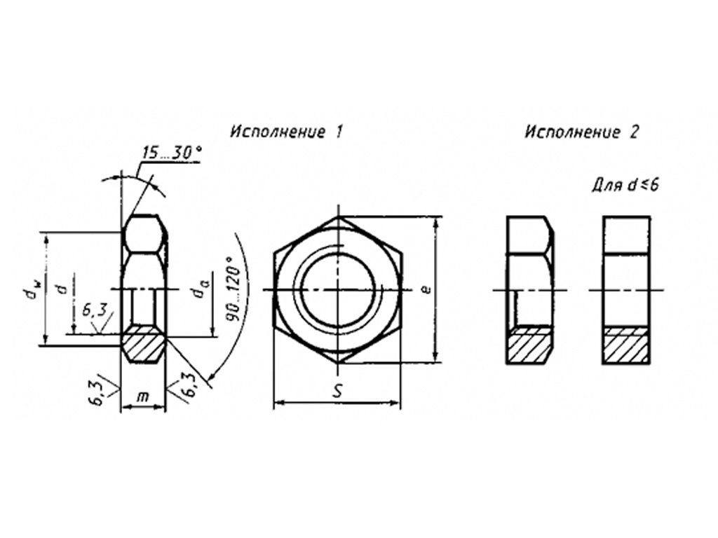 Гайки шестигранные с уменьшенным размером "под ключ", класс точности В ГОСТ 15522-70.
