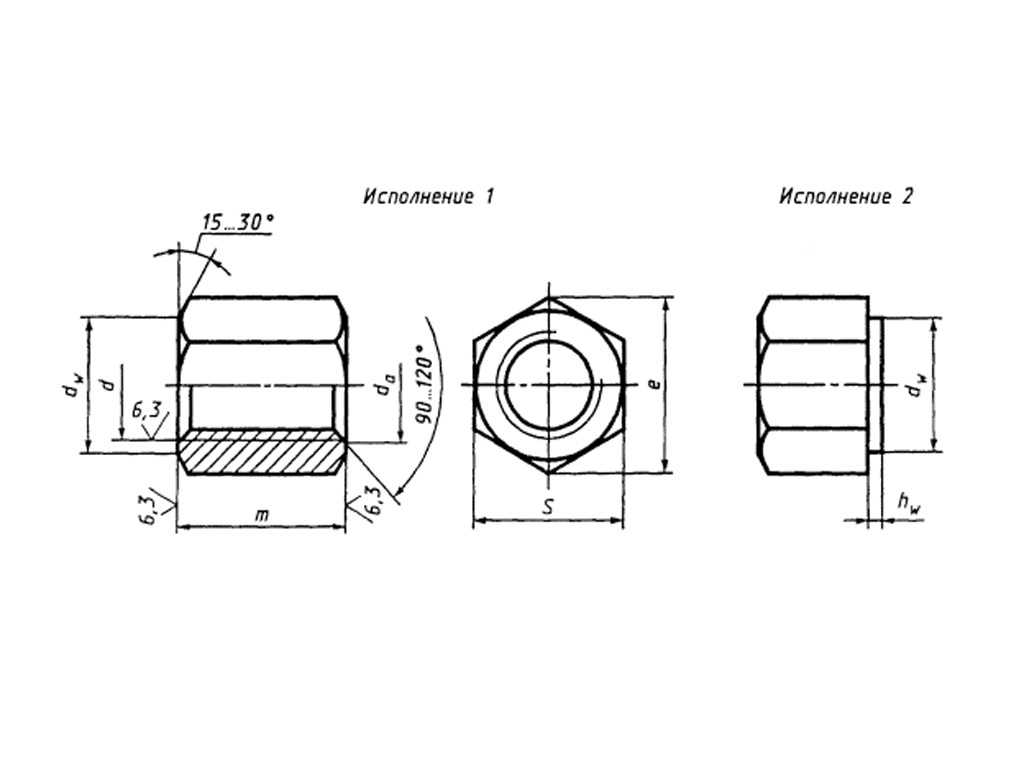 Гайка шестигранная высокая, класс точности В ГОСТ 15523-70