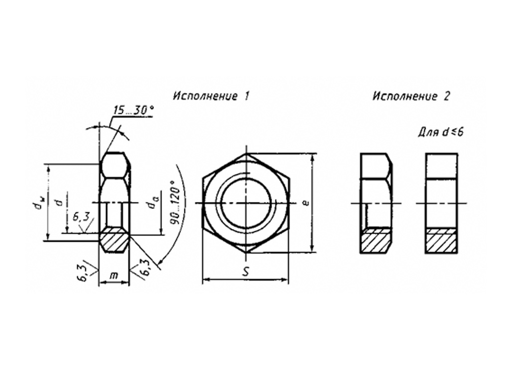 Гайка шестигранная низкая, класс точности В ГОСТ 5916-70