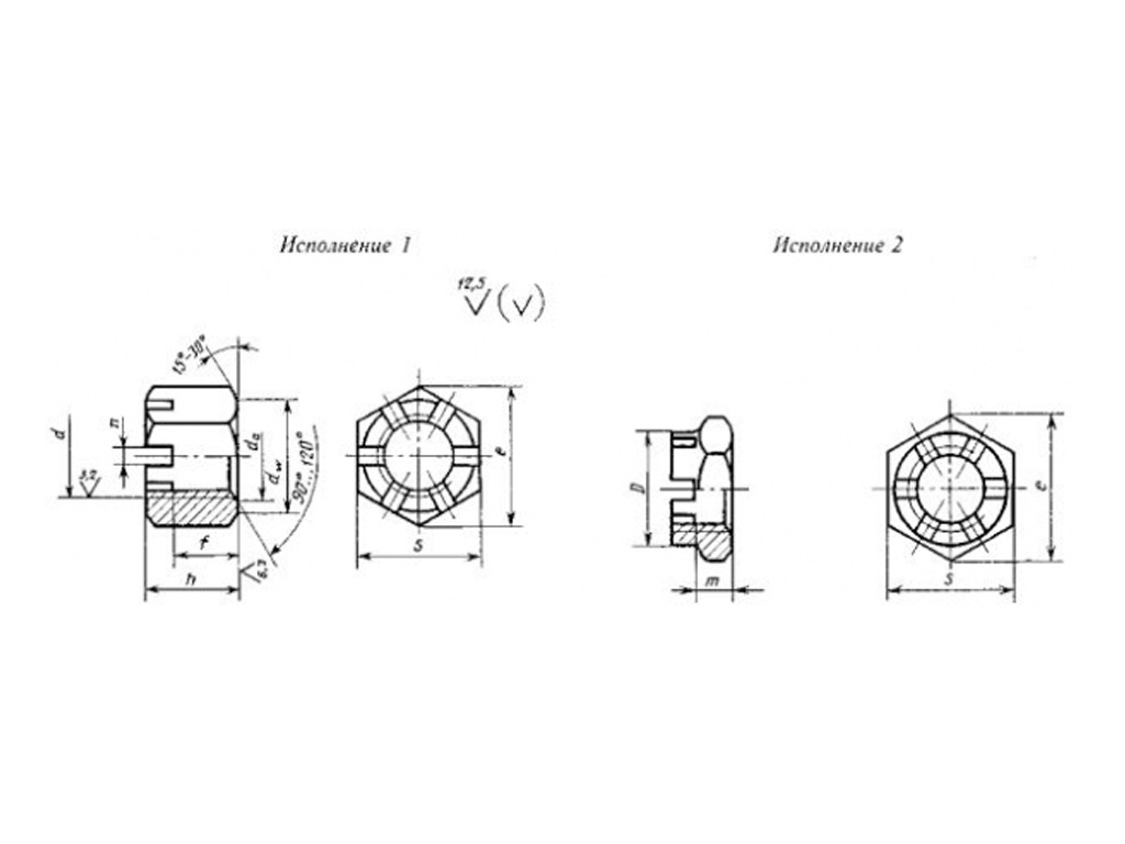 Гайки шестигранные корончатые и прорезные, класс точности В ГОСТ 5918-73