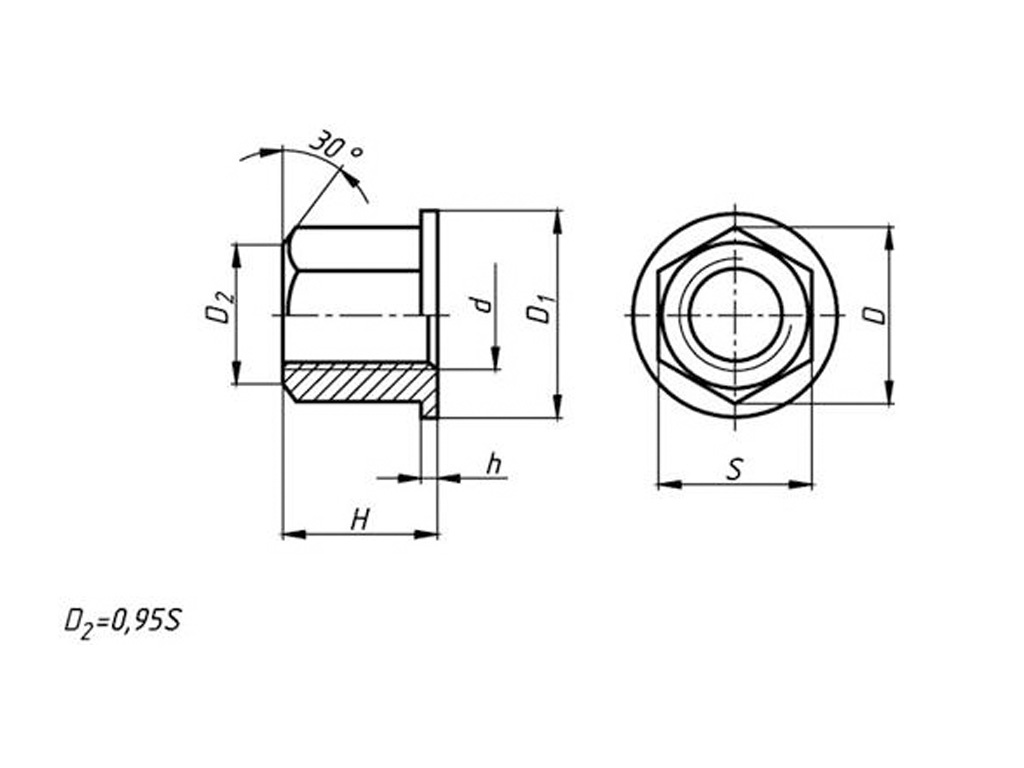 Гайка шестигранная с буртиком ГОСТ 8918-69