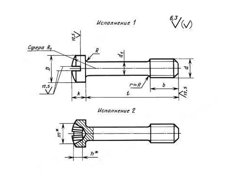 Винт с цилиндрической головкой и сферой, класс точности В ГОСТ 10337-80