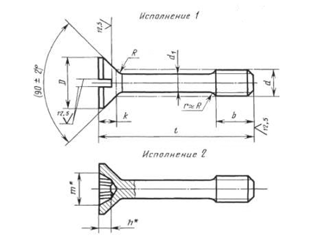 * ГОСТ предусматривает возможность изготовления крепежа с удлиненной резьбовой частью.