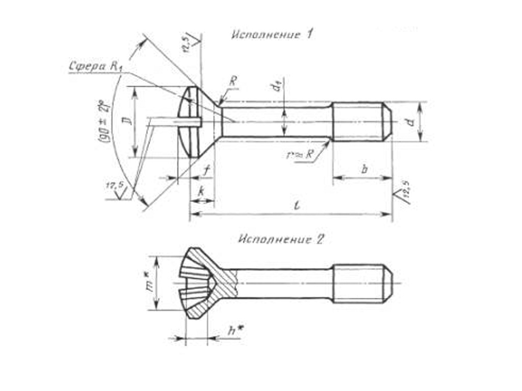 Согласно нормативу ГОСТ 10340-80 крепежный элемент может иметь длину от 6 до 80 мм. Диаметр винта с полупотайной головкой — от 2,5 до 12 мм.