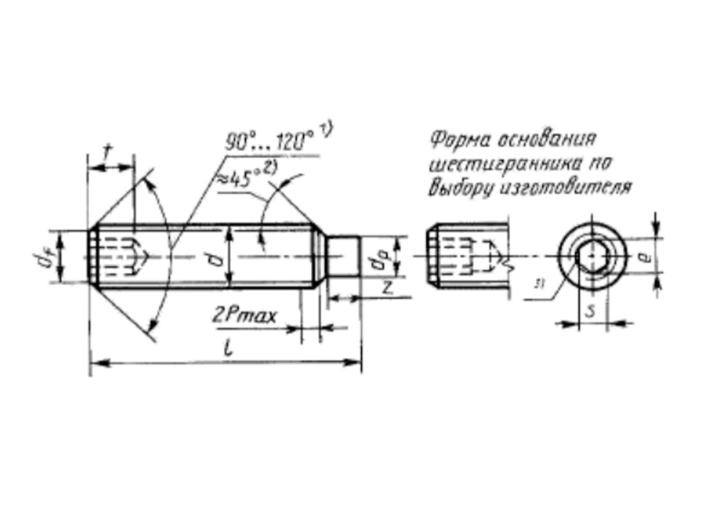 Винт установочный с цилиндрическим концом и шестигранным углублением под ключ, класс точности А,В ГОСТ 11075-93