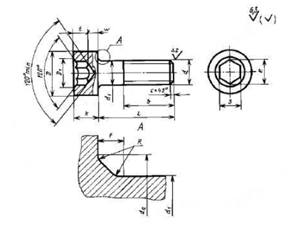 Винт с цилиндрической головкой и шестигранным углублением, класс точности А ГОСТ11738-84