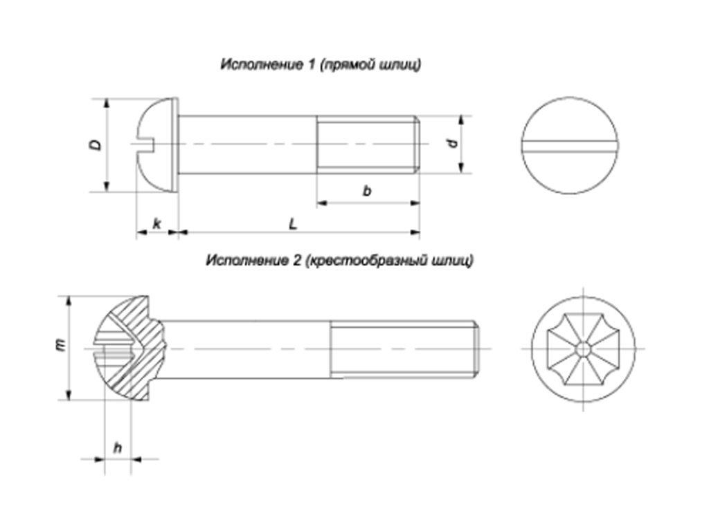 Винт с полукруглой головкой ГОСТ 17473-80, класс точности А, В