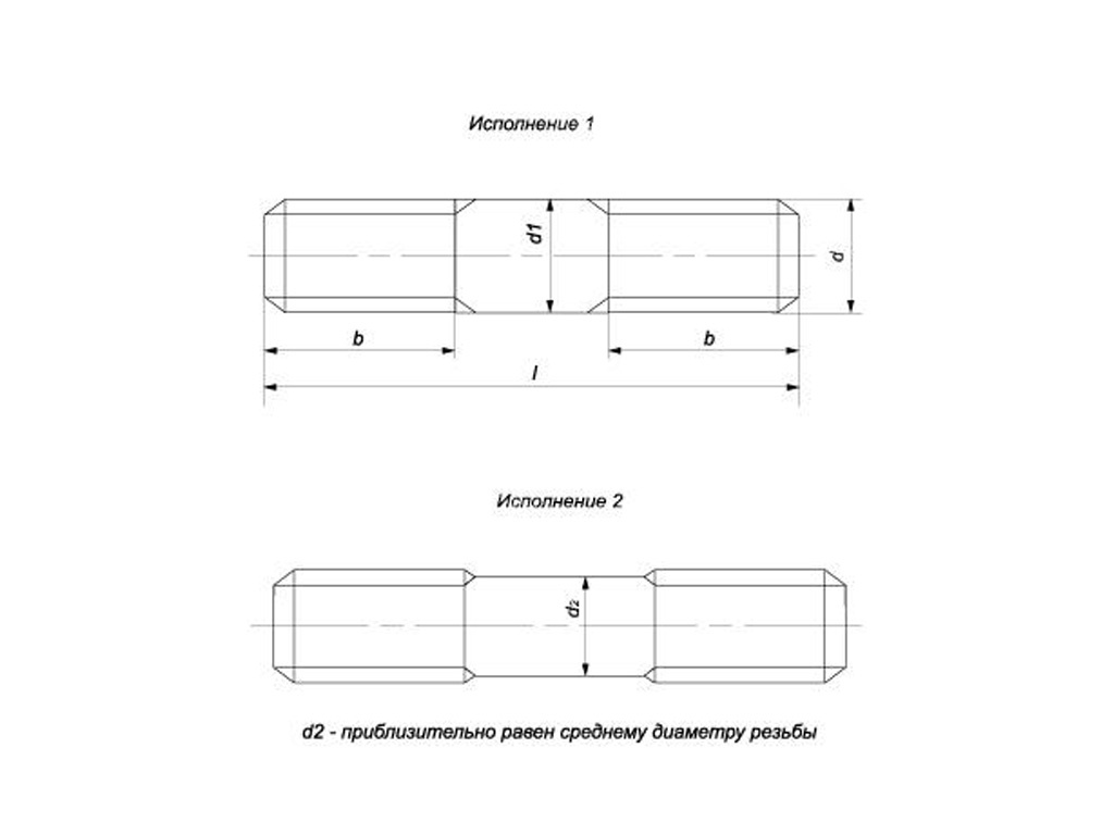 * Cтандартом допускается длина резьбовой части (b2) по всей длине шпильки при заказе продукции с длиной (l) меньше указанной в настоящей таблице.