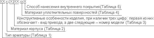 Принятое в арматуростроении условное обозначение по таблицам-фигурам состоит из цифр и букв.