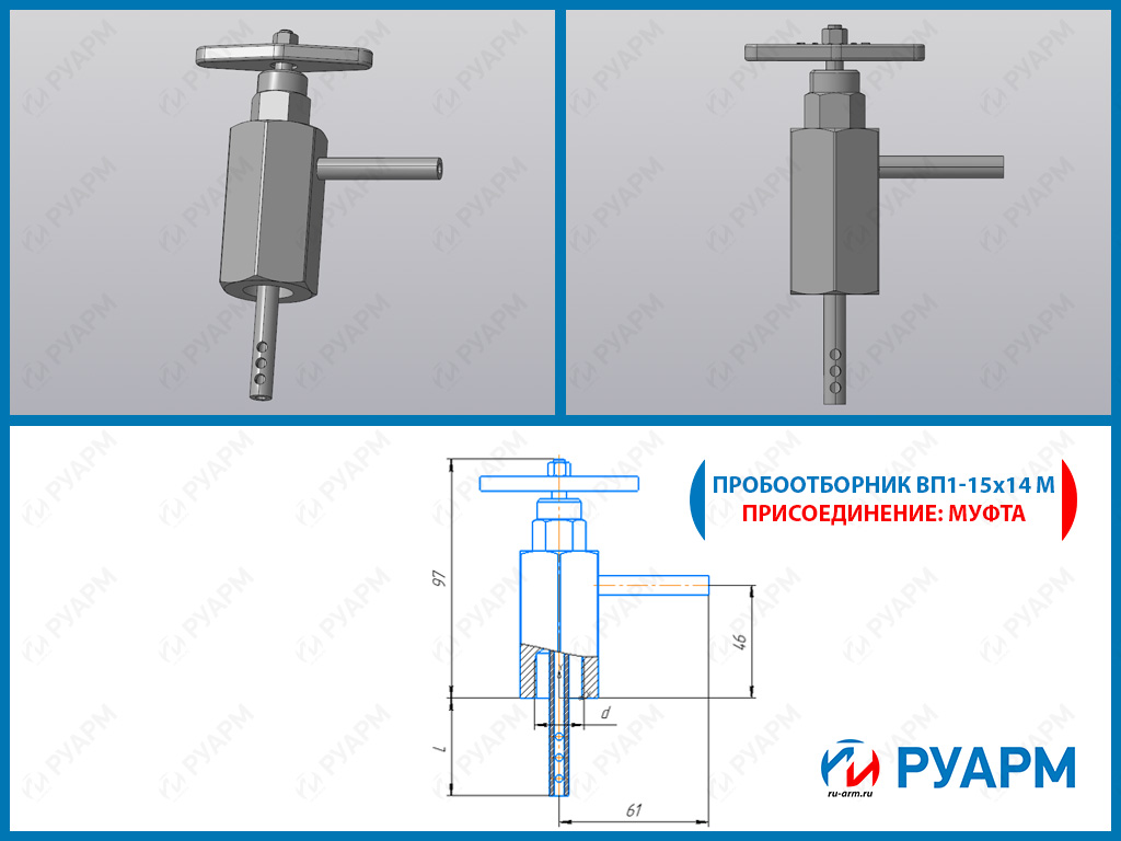 Пробоотборник малый ВП1-15Х21 М, ВП1-15Х14 М, ВП1-15Х35 М тип присоединения: муфта