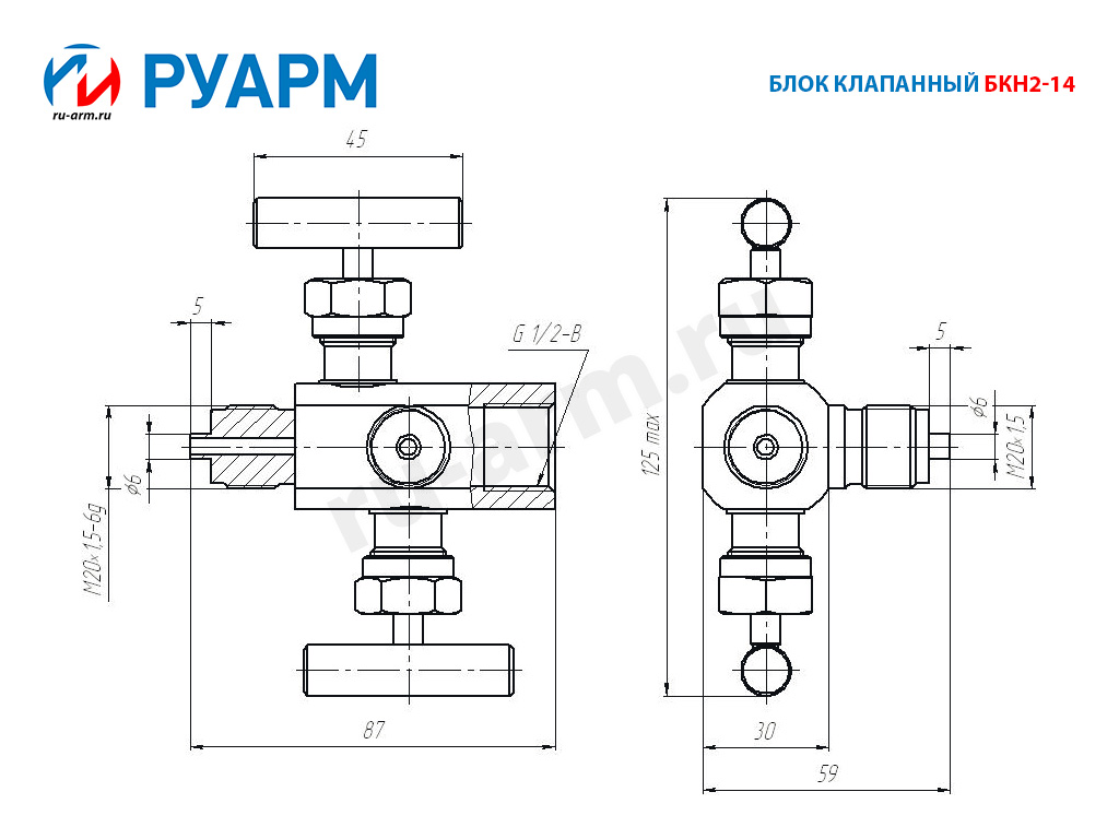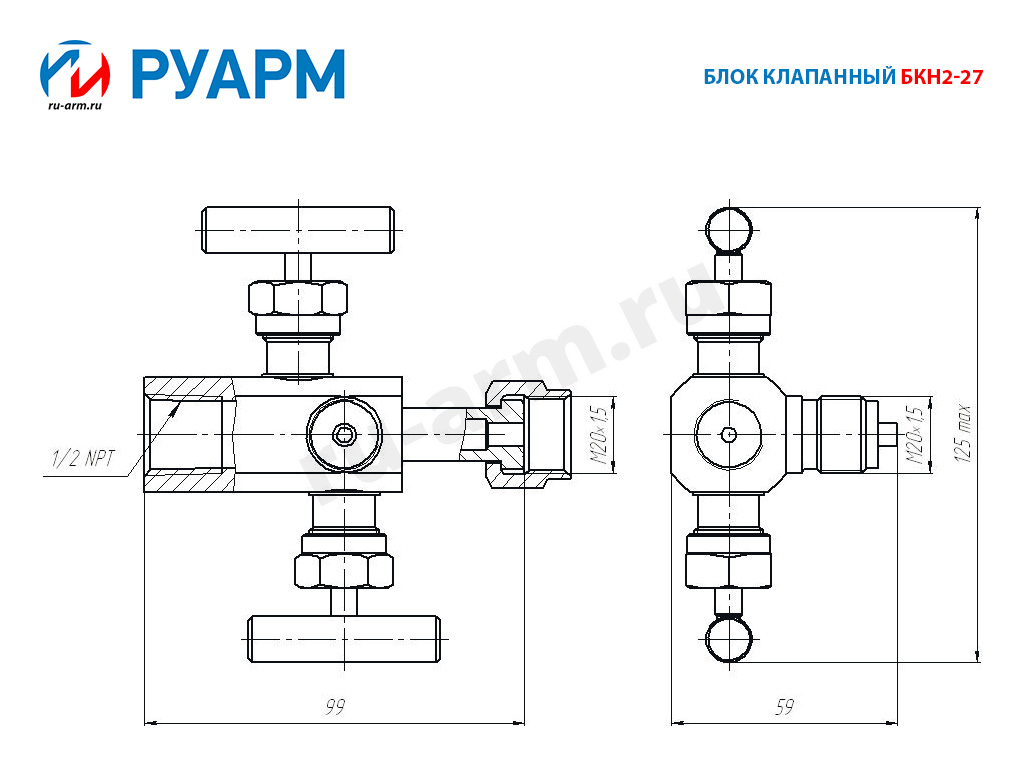 | Блок клапанный БКН2-57 | БКН2-57 | Наружная резьба G1/2 | Внутренняя резьба G1/2 | Внутренняя резьба G1/4 |