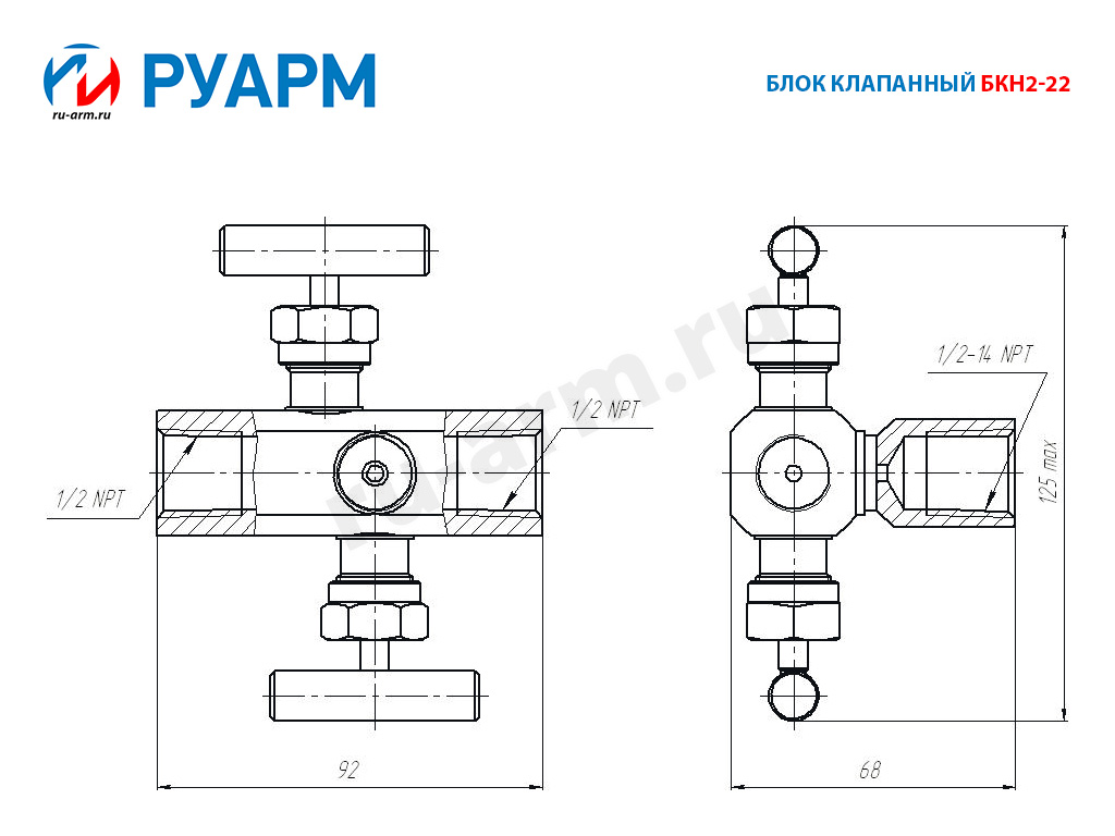 | Блок клапанный БКН2-22 | БКН2-22 | Внутренняя резьба 1/2 NPT | Внутренняя резьба 1/2 NPT | Внутренняя резьба 1/2 NPT |