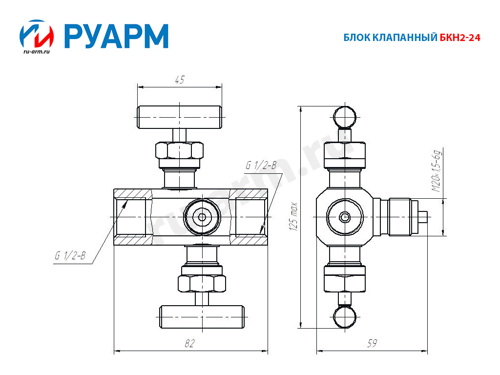 | Блок клапанный БКН2-59 | БКН2-59 | Наружная резьба М20х1,5 под плоский ниппель |
