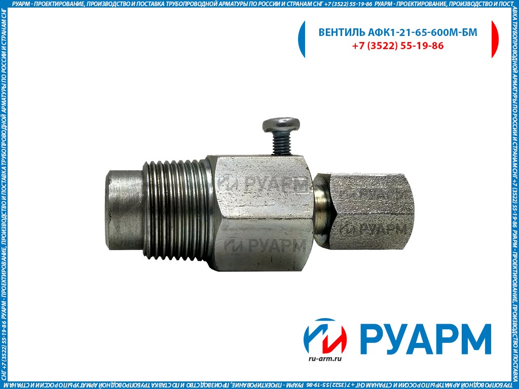 Конструкция вентиля АФК1-21-65-600М-БМ обеспечивает установку манометра в любое положение, удобное для наблюдения за его показаниями.