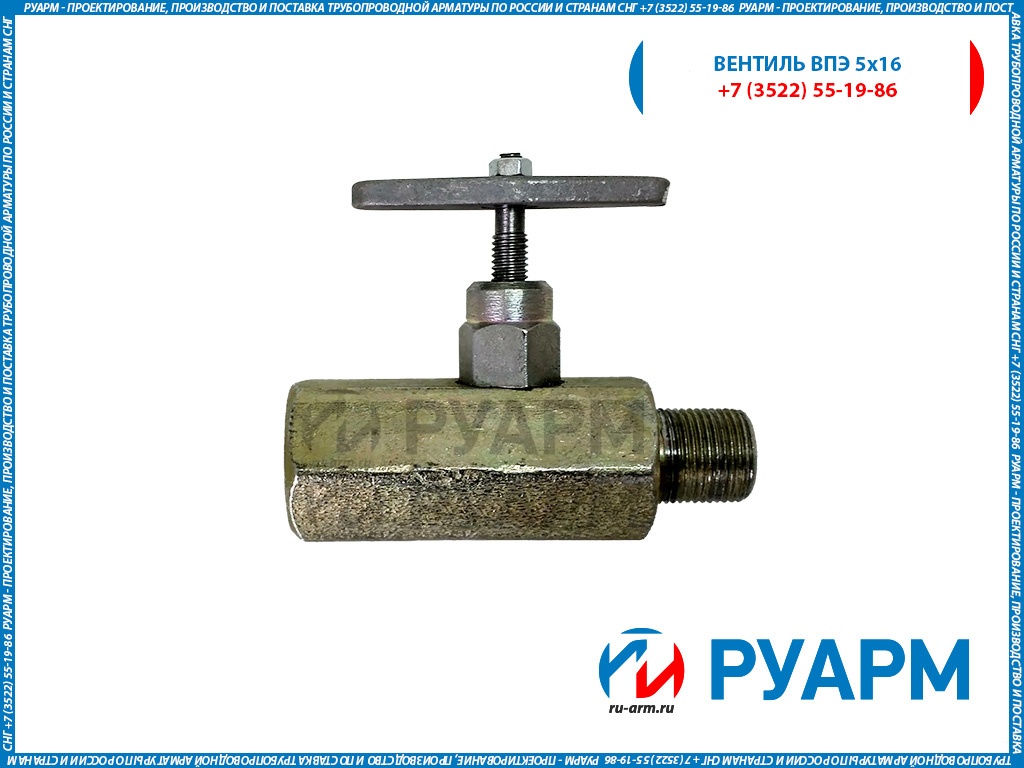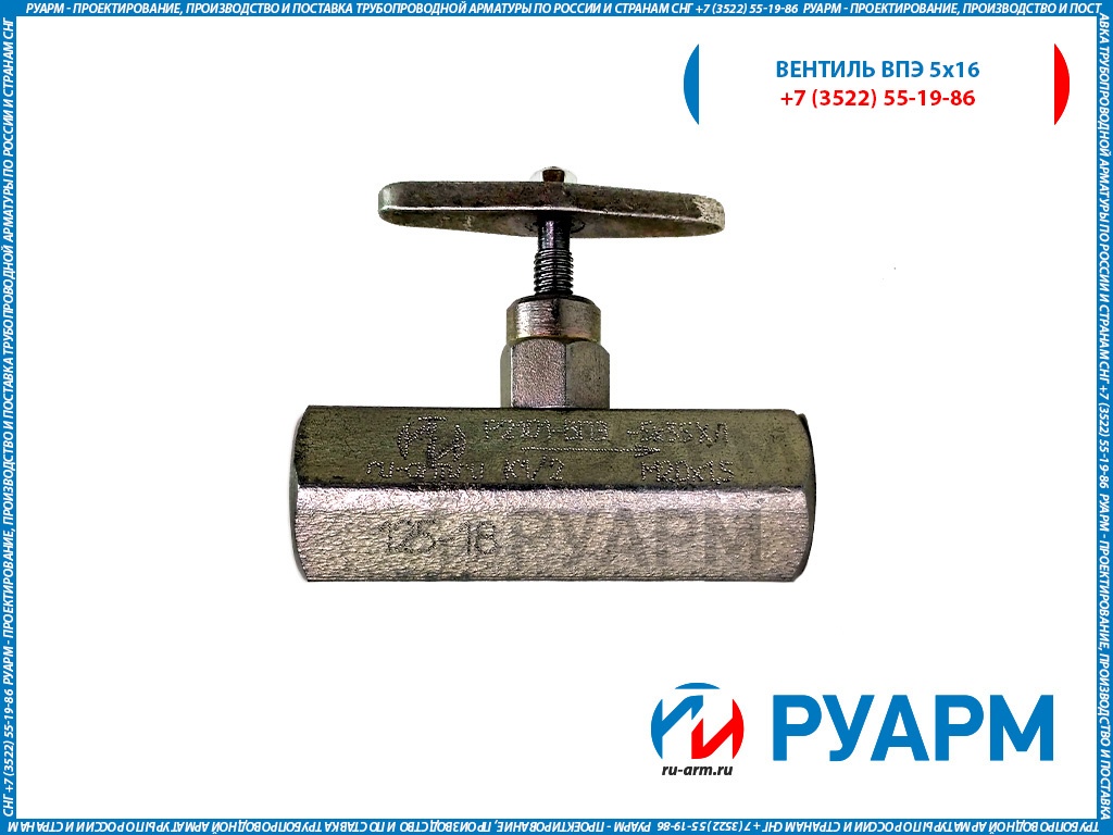 Клапана стальные прямоточные с эластомерным уплотнением (Вентиль ВПЭ 5х16) служат для установки в качестве запорных устройств на вторичных отводах арматуры и трубопроводах трубопроводах для добычи, транспортировки и переработки нефти, нефтепродуктов, других жидкостей и природного газа для отбора проб, а также для присоединения манометров.