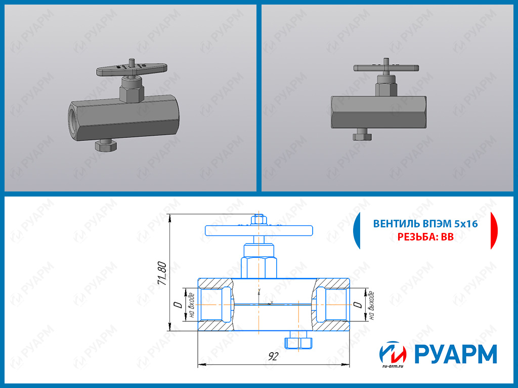 Приобретая вентили ВПЭМ, производства компании «РУАРМ» - Вы получаете качественные прямоточные манометрические клапаны по доступной цене с гарантиями производителя.